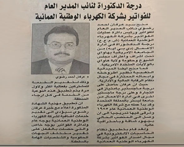 - The first time the semi-automatic billing system was introduced in the Sultanate of Oman in 1998.