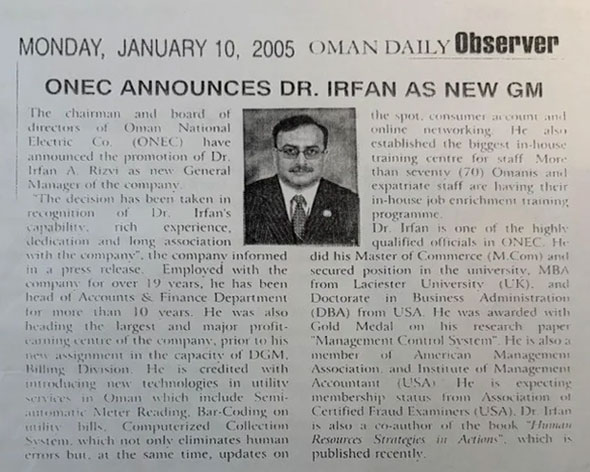 Roots: Born in Pakistan, he completed his university-level education in Karachi, Pakistan. Irfan Rizvi’s family migrated from India and experienced the catastrophic calamity (the brutalities) of the partition of India. Irfan was groomed and cherished in an environment of love and sacrifices for the family, community, and country. He learned how to lead from the grassroots, explore the world, and learn from diversity.
